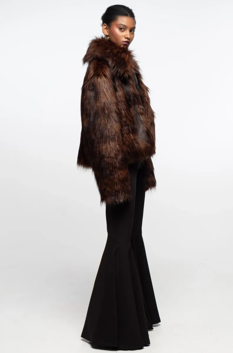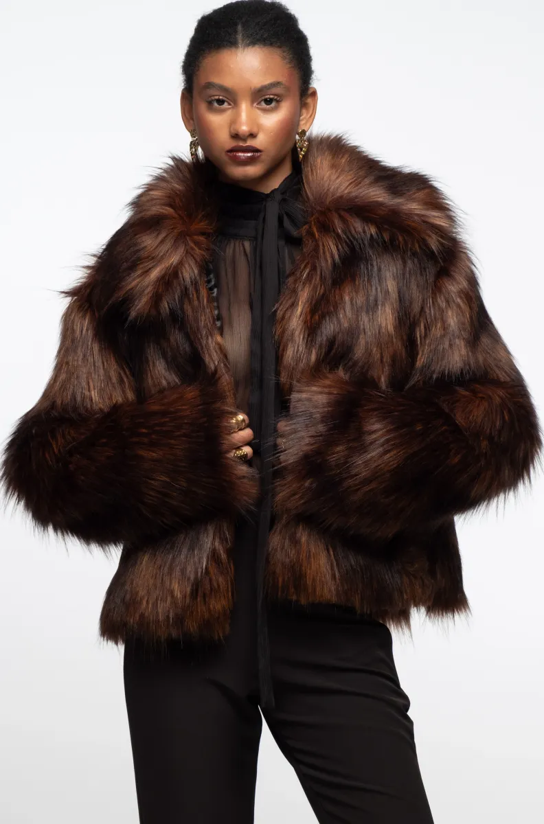Το Lavish Eco Fur Coat της Peace & Chaos αποτελεί ένα εντυπωσιακό statement κομμάτι που απογειώνει κάθε χειμερινή εμφάνιση. Με υφή που θυμίζει γούνα αλεπούς μακρύτριχης, αυτό το cropped οικολογικό παλτό ξεχωρίζει χάρη στο oversized γιακά, τη μαλακή υφή και την πλήρη εσωτερική επένδυση.