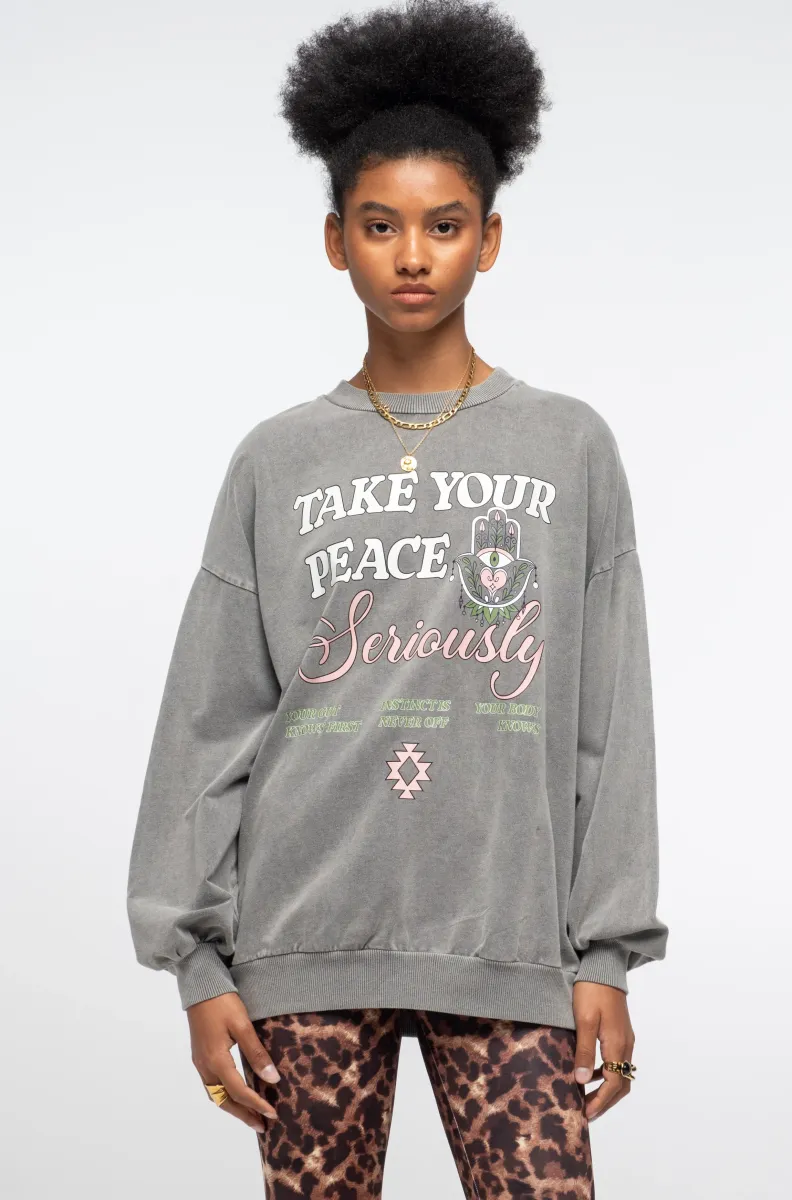 Το Mindfulness Sweater της Peace + Chaos είναι ένα oversized φούτερ από sandwashed βαμβάκι με screen printed quotes & artistic details.
