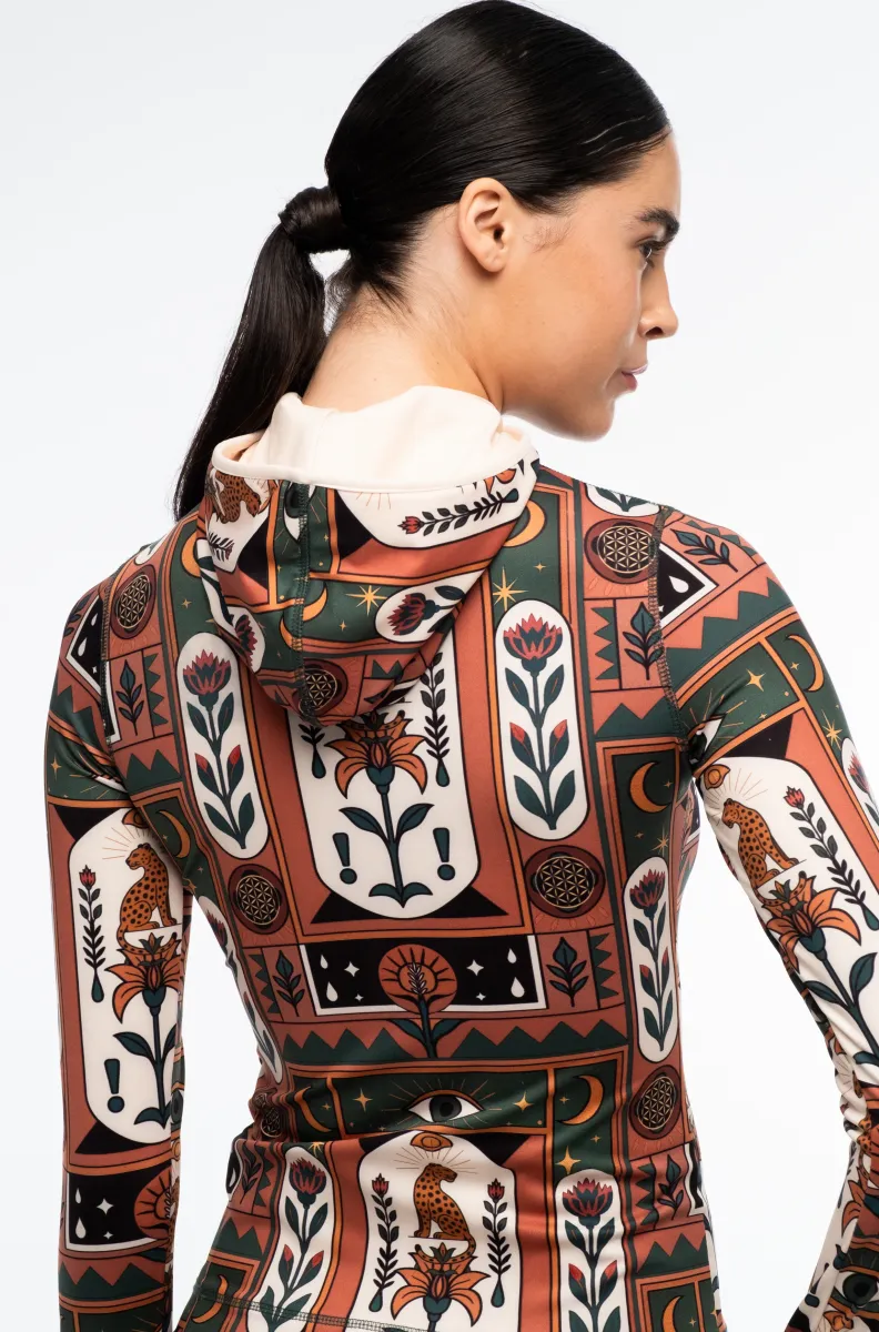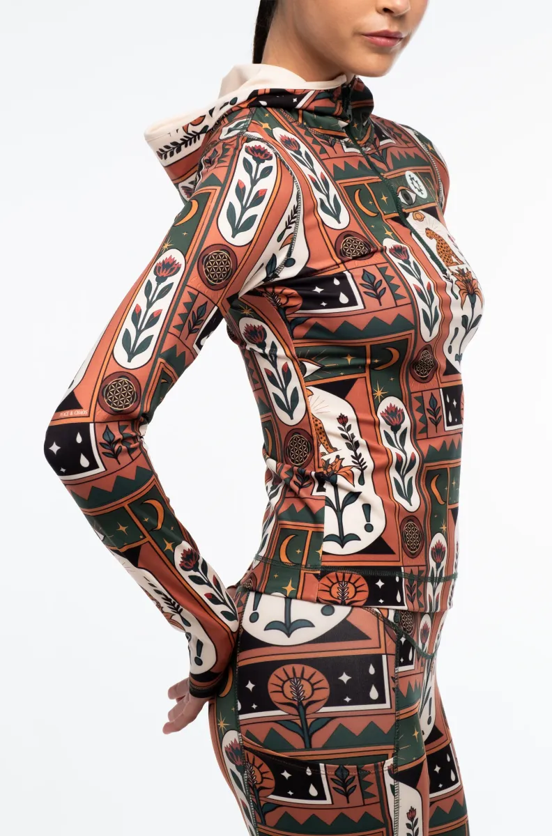Το PEACE AND CHAOS Mystic Bloom Fitted Active Zip Hoodie είναι ένα slim fit hoodie με all-over print που συνδυάζει graphic florals και αρχαία σύμβολα. Διαθέτει thumbhole cuffs, chunky φερμουάρ, binding details, αντίθετες ραφές χρωμάτων και vinyl logo Chaka stamp, προσφέροντας στυλ και λειτουργικότητα για κάθε αθλητική ή casual εμφάνιση.
