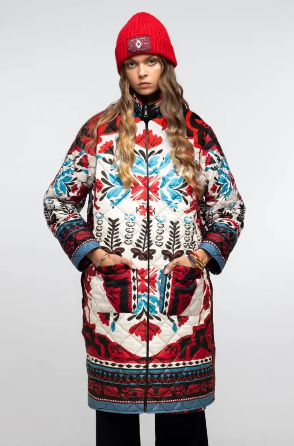 Το PEACE AND CHAOS Mythical / Romancer Puffer Double Faced είναι ένα διπλής όψης χειμερινό μπουφάν, ιδανικό για μοναδικές εμφανίσεις με δύο διαφορετικά looks σε ένα κομμάτι. Η αναστρέψιμη μεταλλική φερμουάρ επιτρέπει να φοριέται με Mythical placement print σε ecru φόντο ή με Romancer all-over print σε μαύρο φόντο.