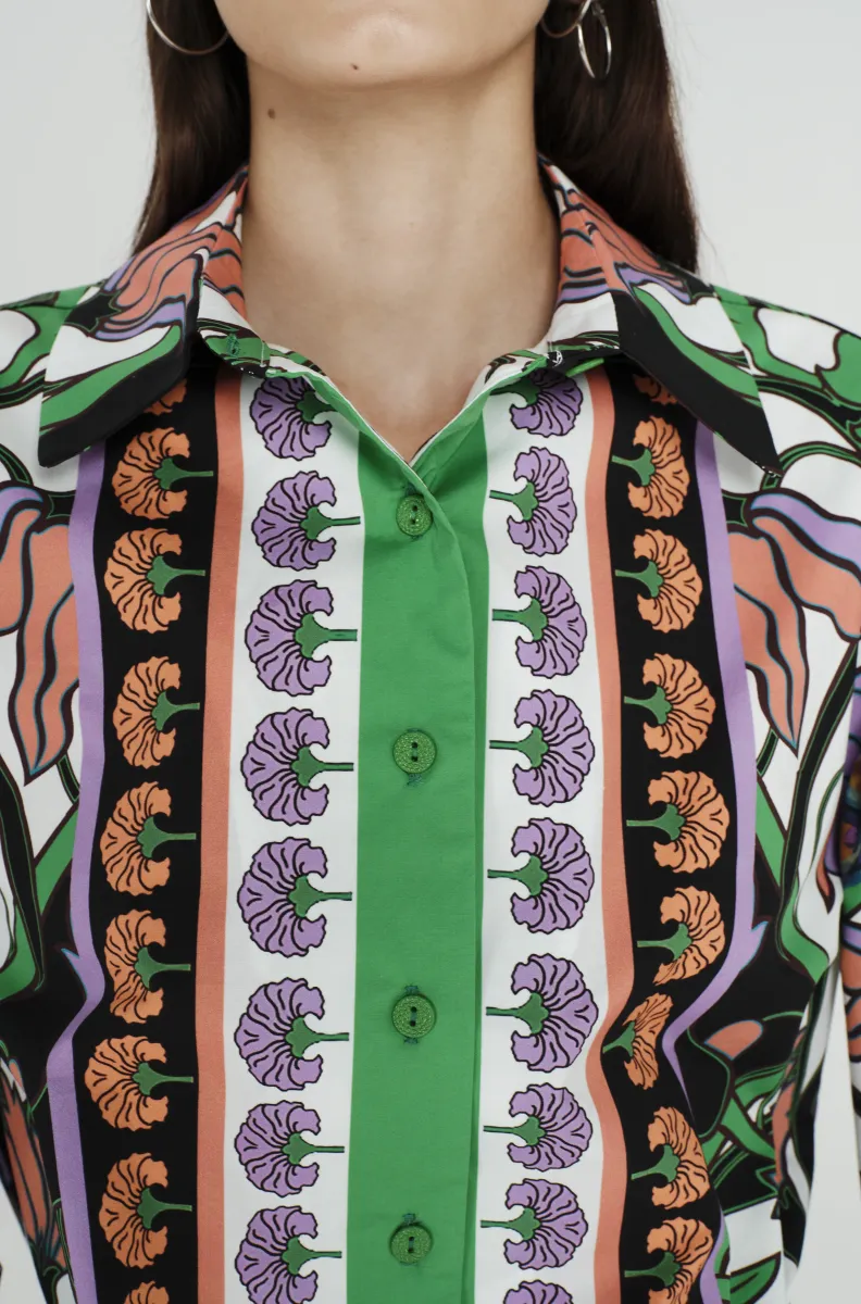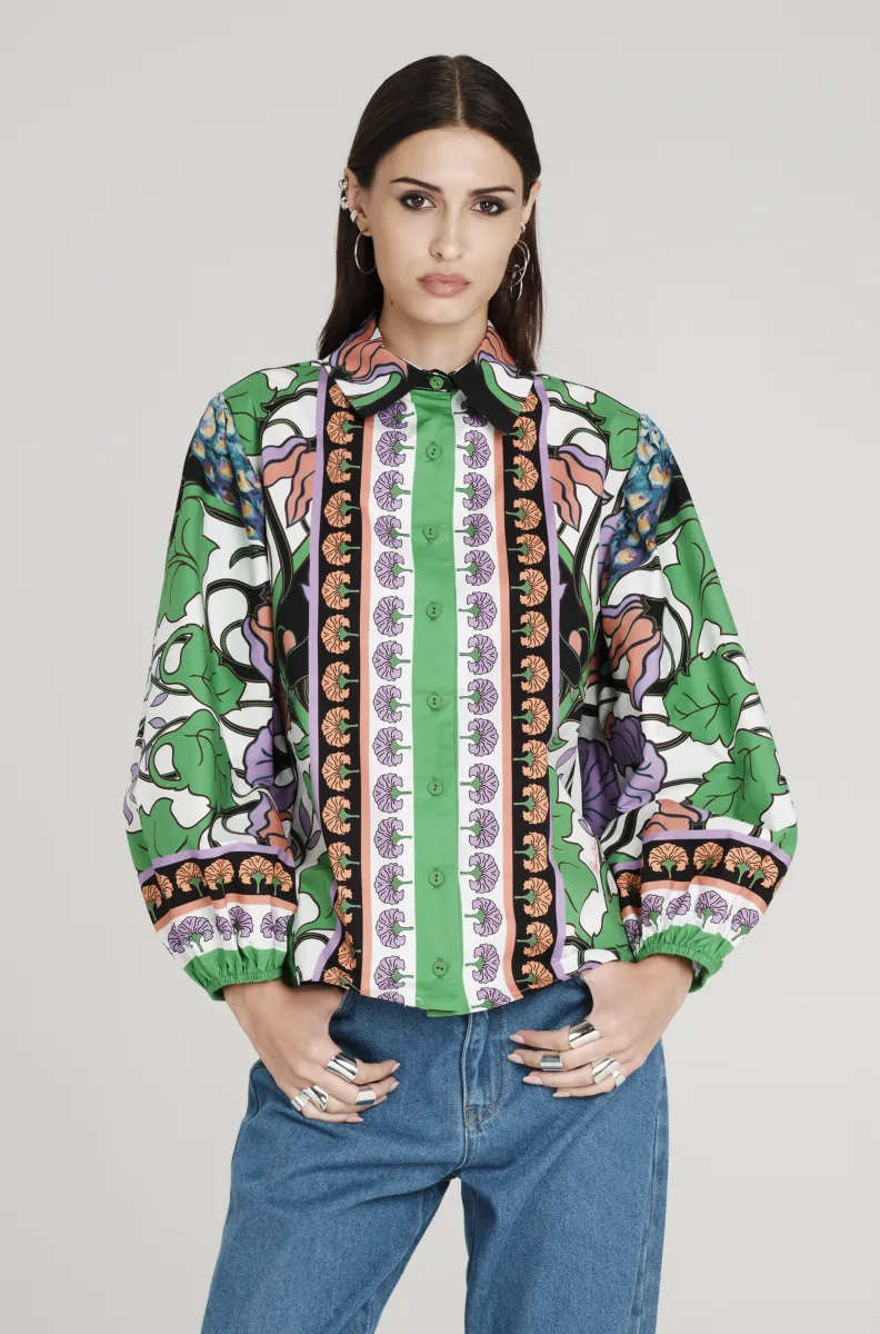Το PEACE AND CHAOS Nostalgia Shirt ξεχωρίζει για τα έντονα χρώματα και το ιδιαίτερο all-over print με παγώνια και λουλούδια. Ένα statement κομμάτι που εκφράζει την ταυτότητα του brand μέσα από καλλιτεχνικό σχεδιασμό και δυναμική αισθητική.