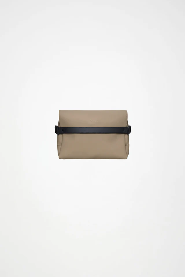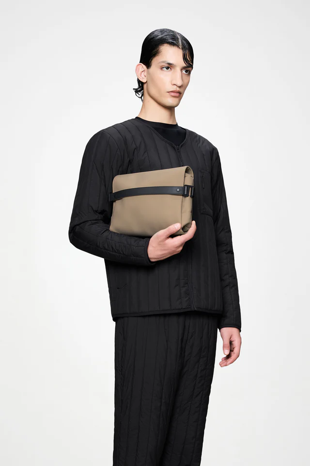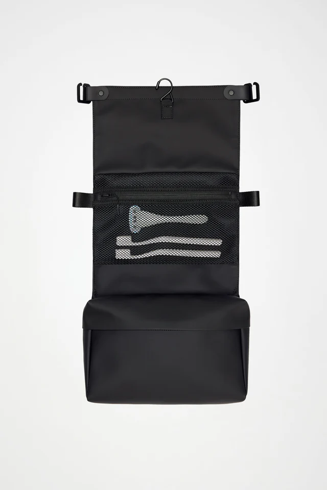 Το νεσεσέρ κλείνει με flap και c-clips, διατηρώντας το περιεχόμενο ασφαλές όταν είναι διπλωμένο. Κατασκευασμένο από το χαρακτηριστικό αδιάβροχο PU ύφασμα της RAINS, με TPU λεπτομέρειες και minimal hardware, προσφέρει ανθεκτικότητα και μοντέρνο design.
