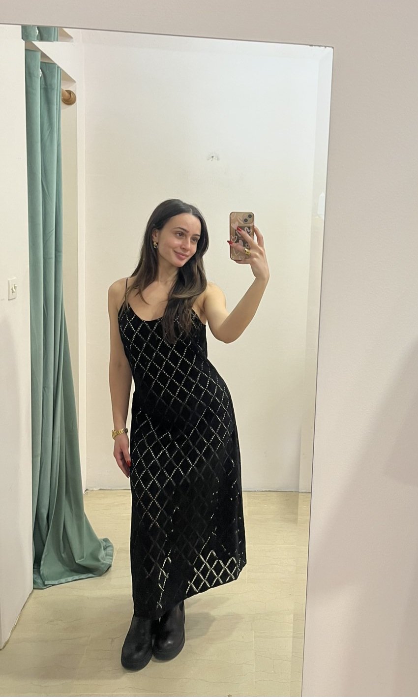 Ελαστικό φόρεμα με τιράντες και λεπτομέρεια δαντέλας. Ιδανικό για layering και καθημερινά looks