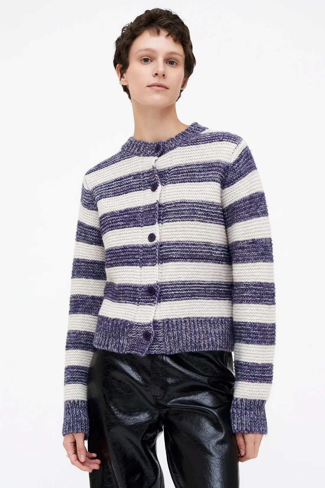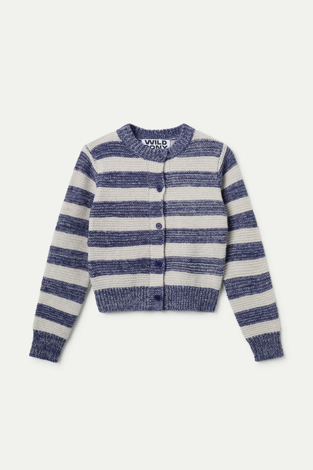 Το WILD PONY White and Blue Striped Cardigan είναι το ιδανικό πλεκτό για να δώσει φρεσκάδα και χρώμα στο στυλ σου. Ο συνδυασμός λευκών και μπλε ριγών δημιουργεί ένα ναυτικό-inspired look που παραμένει διαχρονικά κομψό. Με στρογγυλή λαιμόκοψη και μπροστινό κλείσιμο με κουμπιά, το cardigan αυτό μπορεί να φορεθεί είτε κουμπωμένο είτε ανοιχτό για πιο χαλαρό layering.