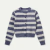 Γυναικείο πλεκτό cardigan με ριγέ σχέδιο σε λευκό και μπλε